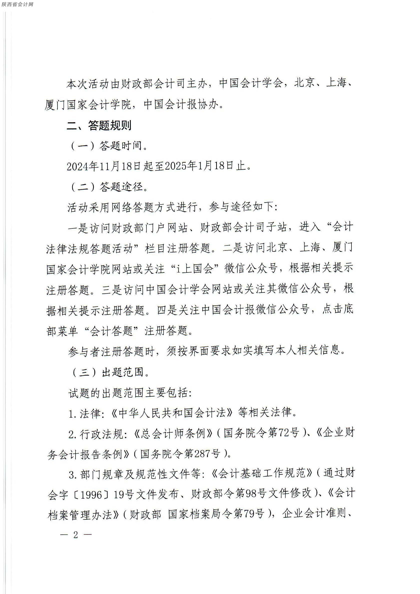 财政部办公厅关于开展会计法律法规答题活动的通知